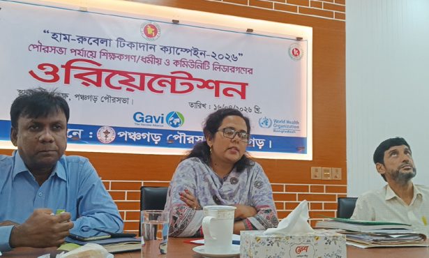 পঞ্চগড়: জেলায় আগামী ২০ এপ্রিল থেকে হাম-রুবেলা টিকাদান কর্মসূচি শুরু হচ্ছে। এ কর্মসূচির আওতায় জেলার প্রায় ১ লাখ ২০ হাজার শিশুকে টিকা দেওয়া হবে। এ উপলক্ষ্যে বৃহস্পতিবার (১৬ এপ্রিল) দুপুরে পঞ্চগড় পৌরসভা সভাকক্ষে একটি ওরিয়েন্টেশন সভা অনুষ্ঠিত হয়। পৌরসভার আয়োজনে অনুষ্ঠিত সভায় শিক্ষক, ধর্মীয় নেতা ও কমিউনিটি লিডাররা অংশ নেন। সভায় অতিরিক্ত জেলা প্রশাসক ও […]