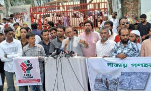 ঢাকা: ফিলিস্তিনের গাজায় ইসরায়েলি বাহিনীর বর্বর গণহত্যার প্রতিবাদে রাজধানীর বায়তুল মোকাররম এলাকায় বিক্ষোভ সমাবেশ ও মিছিল অনুষ্ঠিত হয়েছে। শুক্রবার (১১ এপ্রিল) দুপুরে জুমার নামাজের পর ইসলামী যুব আন্দোলন বাংলাদেশ, ঢাকা […]