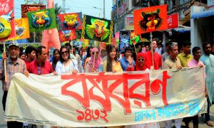 চট্টগ্রাম ব্যুরো: চিরায়ত গান, কবিতা, নৃত্য, শোভাযাত্রাসহ লোকজ নানা অনুষঙ্গে, আনন্দ-উচ্ছ্বাসে চট্টগ্রামে বাংলা নতুন বছরকে বরণ করা হচ্ছে। প্রখর রোদ উপেক্ষা করে নগরীর বর্ষবরণের বিভিন্ন আয়োজনে যোগ দিয়েছে সর্বস্তরের হাজার, […]