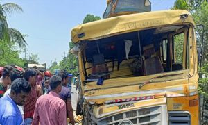 কুষ্টিয়া: কুষ্টিয়ার মিরপুর উপজেলায় দুই ট্রাকের মুখোমুখি সংঘর্ষে রাব্বি (২৫) নামের এক হেলপার নিহত হয়েছেন। বুধবার (২৩ এপ্রিল) সকালে উপজেলার কুষ্টিয়া-মেহেরপুর সড়কের তালতলায় এ ঘটনা ঘটে। পরে চিকিৎসাধীন অবস্থায় দুপুরে […]