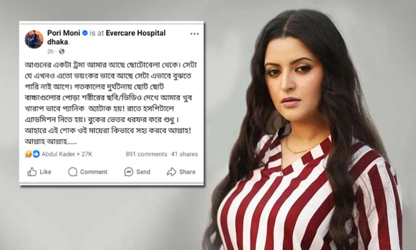 পরীর ভাষায়: ‘আমার আগুনের একটা ট্রমা আছে ছোটবেলা থেকে। সেটা যে এখনও এত ভয়ংকরভাবে আছে, তা বুঝতে পারি নাই। গতকালের দুর্ঘটনায় ছোট ছোট বাচ্চাগুলোর পোড়া শরীরের ছবি/ভিডিও দেখে আমার খুব খারাপভাবে প্যানিক অ্যাটাক হয়!’