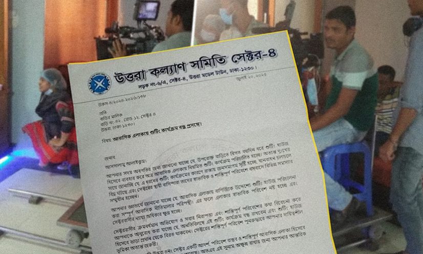 প্রসঙ্গত, গত ২০ জুলাই কল্যাণ সমিতির সভাপতি ও সাধারণ সম্পাদক স্বাক্ষরিত চিঠিতে বলা হয়, শুটিংয়ের কারণে জনসমাগম, যানজট এবং বাসিন্দাদের স্বাভাবিক জীবনযাত্রা ব্যাহত হচ্ছে। সেকারণে শুটিং হাউজ হিসেবে বাড়ি ভাড়া না দিতে হাউস মালিকদের প্রতি আহ্বান জানানো হয়।