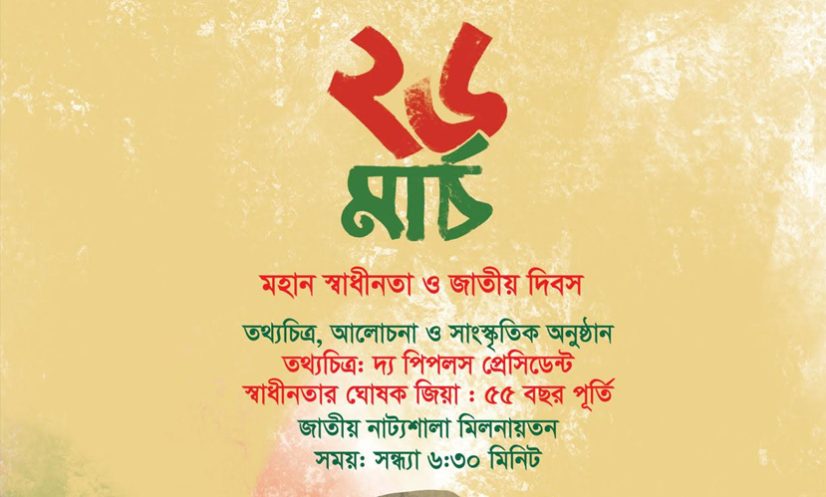 মহান স্বাধীনতা দিবস ২০২৬ উপলক্ষে বর্ণাঢ্য কর্মসূচি হাতে নিয়েছে বাংলাদেশ শিল্পকলা একাডেমি। দিনটি উদযাপন করতে ২৬ মার্চ বৃহস্পতিবার সন্ধ্যা ৬টা ৩০ মিনিটে জাতীয় নাট্যশালা মিলনায়তনে আয়োজন করা হয়েছে আলোচনা সভা ও সাংস্কৃতিক অনুষ্ঠান।