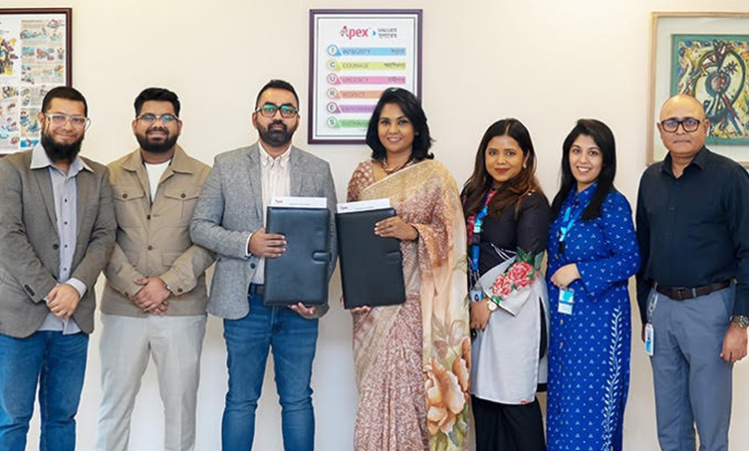 সম্প্রতি ঢাকার জিপি হাউজে অনুষ্ঠিত সমঝোতা স্মারকে স্বাক্ষর করেন গ্রামীণফোনের হেড অব পার্টনারশিপ মুনিয়া গনি এবং অ্যাপেক্স ফুটওয়্যার লিমিটেডের হেড অব মার্কেটিং মো. রায়হান কবির।
