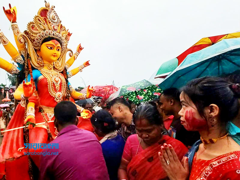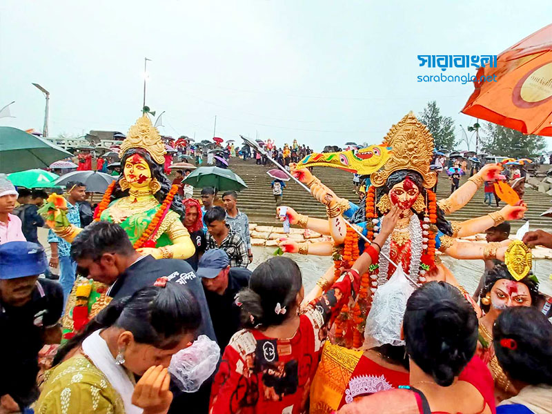 ১০ দিন আগে মহালয়ার মাধ্যমে মণ্ডপে মণ্ডপে শুরু হয়েছিল দেবী দুর্গাকে বরণ করে নেওয়ার আনুষ্ঠানিকতা। এরপর ষষ্ঠীতে শুরু উৎসবের। আজ মঙ্গলবার (২৪ অক্টোবর) বিজয়া দশমীতে দেবীকে বিসর্জনের মাধ্যমে সমাপ্ত হলো পাঁচ দিনের সেই উৎসবের। আগামী দিনগুলোতে সবাই যেন ভালো থাকে এবং সবার মঙ্গল ও কল্যাণ হয়, সেই প্রার্থনাতেই সাঙ্গ হলো শারদীয় দুর্গোৎসব।