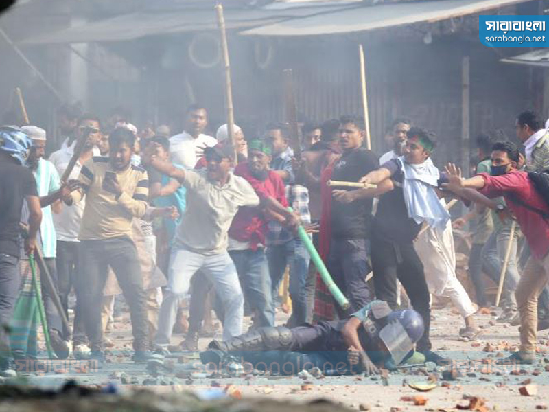 এসময় অন্যান্য পুলিশ সদস্যরা দৌড়ে একটি গলিতে অবস্থান করেন। এক পর্যায় আহত অবস্থায় পুলিশ সদস্য সড়কে পড়ে থাকলে কালভার্ট রোডের দিক থেকে কয়েকজন যুবক দৌড়ে এসে তাকে উদ্ধার করেন।