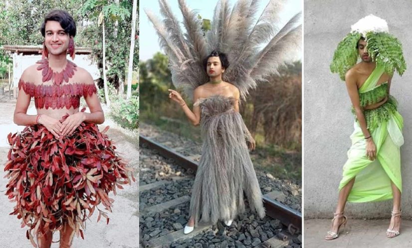 ভাবুন তো, একটা জমকালো ডিজাইনের পোশাক, যা তৈরি করা হয়নি কোনো দামি কাপড় বা দামী স্টোন দিয়ে- বরং তা তৈরী হয়েছে কচু পাতা, কলার পাতা, বা কোনো গাছের ফল আর রঙিন ফুল দিয়েই!