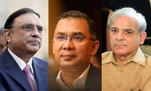 পাকিস্তানের প্রেসিডেন্ট আসিফ আলী জারদারি, বিএনপির চেয়ারম্যান তারেক রহমান ও পাকিস্তানের প্রধানমন্ত্রী শাহবাজ শরিফ।