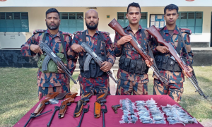 মুন্সীগঞ্জ: মুন্সীগঞ্জের গজারিয়া উপজেলার চরাঞ্চল গুয়াগাছিয়া ইউনিয়নে সেনাবাহিনীর নেতৃত্বে পরিচালিত এক যৌথ অভিযানে আগ্নেয়াস্ত্র, গোলাবারুদ ও দেশীয় অস্ত্র উদ্ধার করা হয়েছে। পুলিশের তালিকাভুক্ত ‘নৌ ডাকাত’ নয়নের ছেলে এবং স্থানীয় কিশোর […]