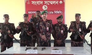 চাঁপাইনবাবগঞ্জ: চাঁপাইনবাবগঞ্জের সীমান্তে তিনটি আগ্নেয়াস্ত্র ও ছয় রাউন্ড গুলি উদ্ধার করেছে বিজিবি। বৃহস্পতিবার (২৭ নভেম্বর) রাতে জেলার শিবগঞ্জ উপজেলার চকপাড়া সীমান্ত থেকে এই অস্ত্র ও গুলি উদ্ধার করা হয়। বিজিবি […]