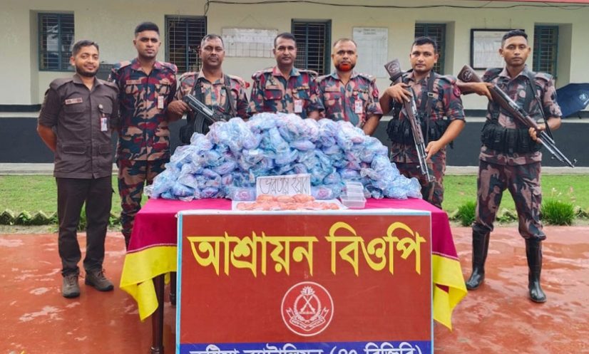 বিজ্ঞপ্তিতে বলা হয়, শনিবার (২ আগস্ট) দিবাগত ভোর রাতে দৌলতপুর সীমান্তের ঠোটারপাড়া নদীতে ভাসমান অবস্থায় ৭৭ কেজি কারেন্ট জাল জব্দ করা হয়। সেখান থেকে আট হাজার ৮০ পিস ইয়াবা, ২৪ বোতল বিদেশী মদ, এক হাজার পিস সিলডিনাফিল ট্যাবলেট, ২৫৭ পিস ট্যাপেন্ডেবল ট্যাবলেট, ৭৭ কেজি কারেন্ট জাল এবং এক হাজার ৮০ পিস আতশবাজি জব্দ করা হয়। অন্যদিকে দুপুরে উপজেলার চিলমারী সীমান্ত থেকে ভারতীয় এক হাজার পিস সিলডিনাফিল ট্যাবলেট এবং এক হাজার ৮০ পিস আতশবাজি উদ্ধার করা হয়।