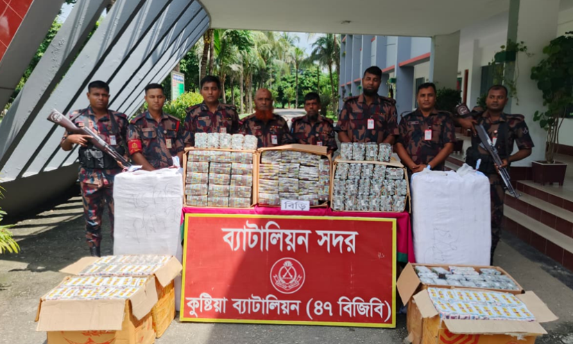কুষ্টিয়া: কুষ্টিয়ায় মাদক ও চোরাচালানবিরোধী ধারাবাহিক অভিযানে বিপুল পরিমাণ নকল বিড়ি, ভারতীয় কারেন্ট জাল ও মদ জব্দ করেছে কুষ্টিয়া ব্যাটালিয়ন (৪৭ বিজিবি)। জব্দ মালামালের আনুমানিক মূল্য ১৩ লাখ ৯ হাজার ৪০০ টাকা।