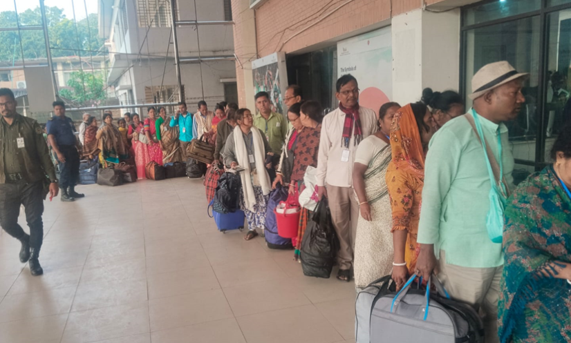 শনিবার (২২ নভেম্বর) সকাল সাড়ে ১০টায় তীর্থযাত্রার ভিসা নিয়ে তারা দেশত্যাগ করেন। দলের নেতৃত্বে ছিলেন নিতাই দয়াল দাস ব্রহ্মচারী (পাসপোর্ট নম্বর এ০৩৫৮২২০১)।