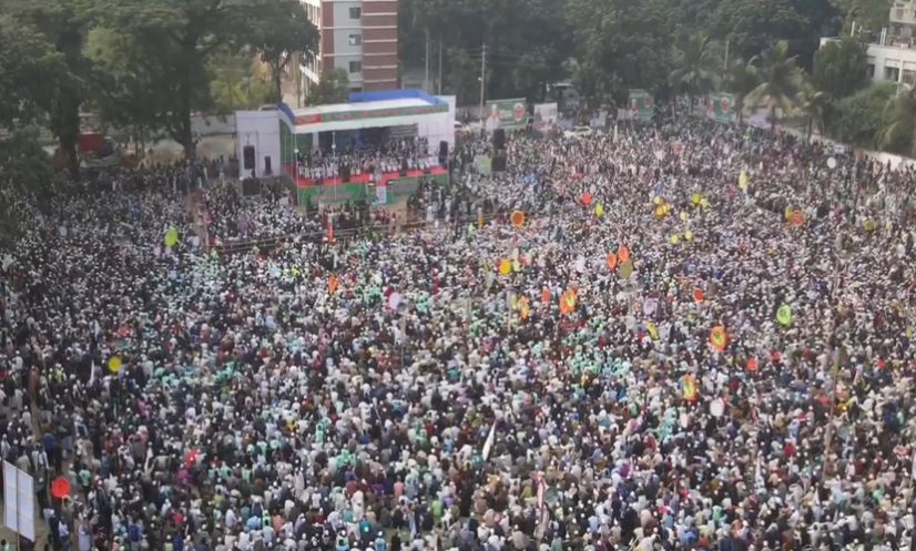 দিনাজপুর থেকে আসা জামায়াত কর্মী নজরুল ইসলাম বলেন, ‘আমরা রাতেই এসে অবস্থান নিয়েছি। এ রকম জনসমাবেশ রংপুরে আগে দেখিনি।’