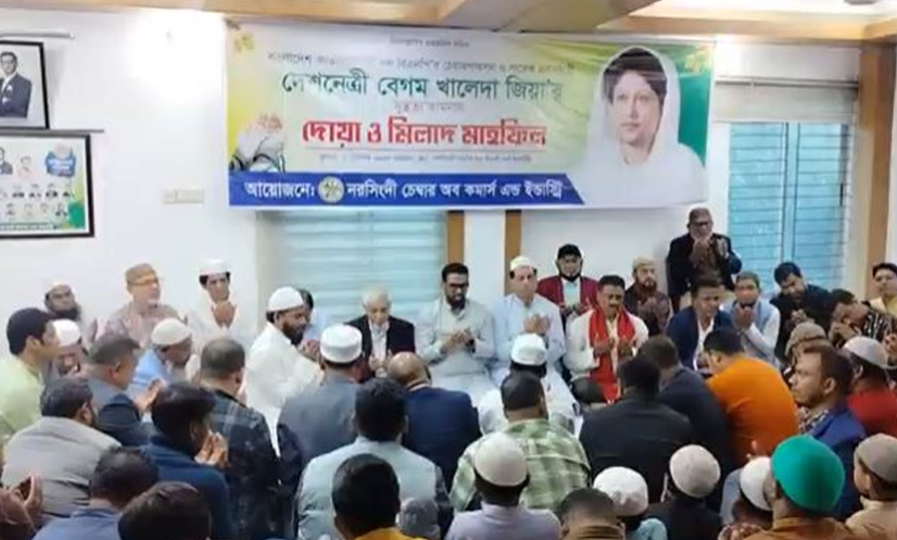 আয়োজিত দোয়া মাহফিলে বেগম খালেদা জিয়ার দ্রুত সুস্থতা, দীর্ঘজীবন এবং দেশের কল্যাণ কামনা করে বিশেষ মোনাজাত করা হয়।