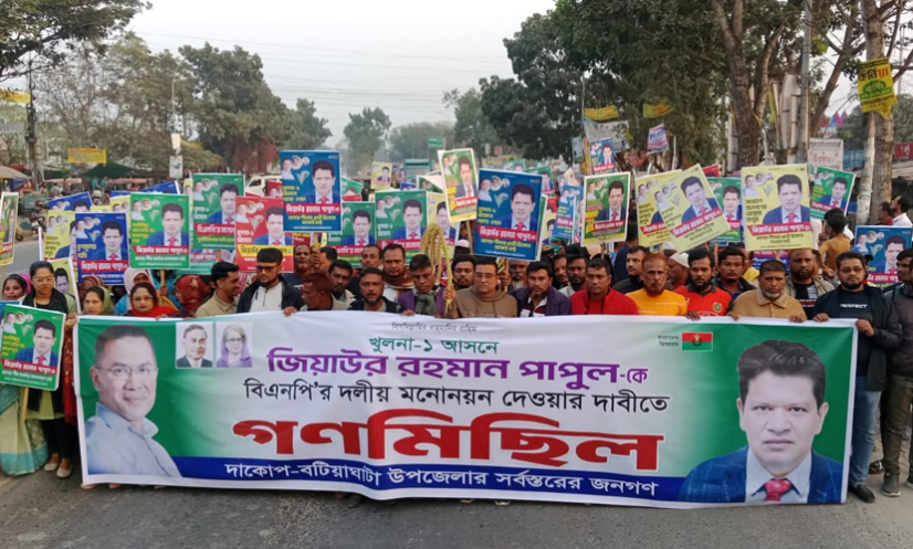 বক্তারা বিএনপির কাছে আহ্বান জানিয়ে বলেন, খুলনা-১ আসনে দলের মনোনয়ন পুনঃবিবেচনা করে যোগ্যতা ও জনপ্রিয়তা বিবেচনায় জিয়াউর রহমান পাপুলকে মনোনয়ন দেওয়ার জোর দাবি জানান।