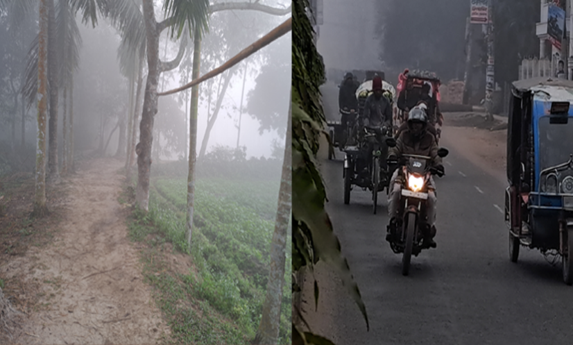 রংপুরের বিস্তীর্ণ চরাঞ্চল থেকে শহরের অলিগলি পর্যন্ত শীতের কবলে পড়েছে সবাই। রাত বাড়ার সঙ্গে সঙ্গে কুয়াশার তীব্রতাও বাড়ছে, যা সকাল ১১টা পর্যন্ত অব্যাহত থাকছে। গত ৪ দিন ধরে সূর্যের মুখ অল্প সময়ের জন্য দেখা যাচ্ছে। সেই সঙ্গে হিমেল বাতাসে সন্ধ্যার পর থেকে শীতের তীব্রতা বাড়তে শুরু করে। সকাল থেকে সন্ধ্যা পর্যন্ত ঘন কুয়াশার চাদরে ঢাকা পড়ে এলাকা, যার ফলে দৃষ্টিসীমা কমে গিয়ে সড়কে যানবাহন চলাচল করছে হেডলাইট জ্বালিয়ে। প্রয়োজন ছাড়া কেউ বাইরে বের হচ্ছে না, চলাচল সীমিত হয়ে পড়েছে। দোকানপাট এবং হাটবাজার দেরিতে খুলছে। শ্রমজীবী মানুষজন, যারা দিনমজুরি বা কৃষিকাজ করে সংসার চালায়, তারা সবচেয়ে বেশি বিপাকে। খড়কুটো বা কাঠ জ্বালিয়ে শরীর গরম করার চেষ্টা করলেও, তীব্র হাওয়ার দাপটে তা যেন সামান্য সান্ত্বনা মাত্র।