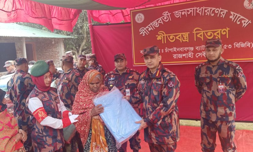 চাঁপাইনবাবগঞ্জ: সীমান্তে ৩০০ জন অসহায়-দুস্থ ও ছিন্নমূল মানুষের মাঝে শীতবস্ত্র বিতরণ করা হয়েছে।