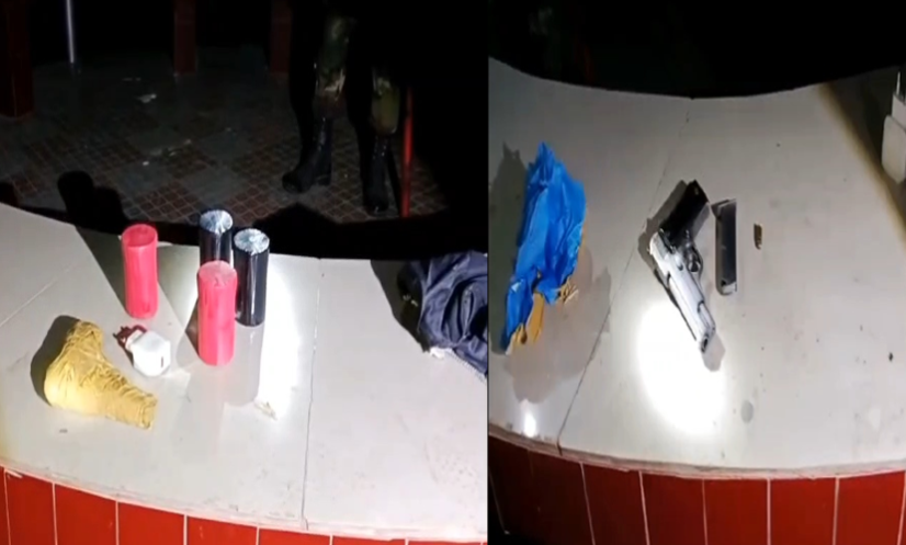 পুলিশ সূত্রে জানা যায়, গোপন সংবাদের ভিত্তিতে যৌথ বাহিনী অভিযান চালিয়ে পরিত্যক্ত বাথরুম থেকে একটি কালো ব্যাগের ভেতর থেকে বোমা সদৃশ বস্তু উদ্ধার করে। একই স্থানে রাখা কাপড়ের ব্যাগে মোড়ানো একটি রিভলভার পাওয়া যায়।