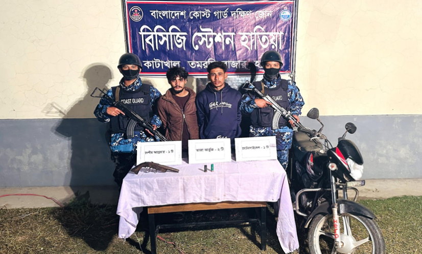 নোয়াখালী: নোয়াখালীর বিচ্ছিন্ন দ্বীপ হাতিয়া উপজেলায় কোস্ট গার্ডের বিশেষ অভিযানে দুজনকে গ্রেফতার করা হয়েছে। এসময় তাদের কাছ থেকে আগ্নেয়াস্ত্র ও দুই রাউন্ড তাজা কার্তুজ জব্দ করা হয়।