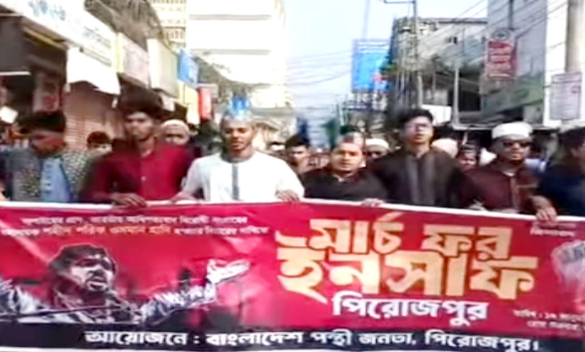 পিরোজপুর: জুলাইয়ের গণআন্দোলন ও ভারতীয় আধিপত্যবাদ বিরোধী সংগ্রামের অন্যতম মহানায়ক র হত্যার দ্রুত ও নিরপেক্ষ বিচারের দাবিতে পিরোজপুরে ‘মার্চ ফর ইনসাফ’ কর্মসূচি পালিত হয়েছে।