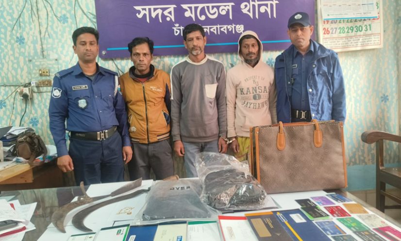 আটকরা হলেন- চাঁপাইনবাবগঞ্জ সদরেরর আরামবাগ গ্রামের আক্তার আলী ছেলে মো. এনামুল হক-এনা (৪৬), মাঝপাড়া গ্রামের মৃত্যু কাওসার আলীর ছেলে মো. রুবেল (৩৮), শান্তির মোড় এলাকার মো. মিজানুর রহমানের ছেলে মো. আওয়াল (৪০)।