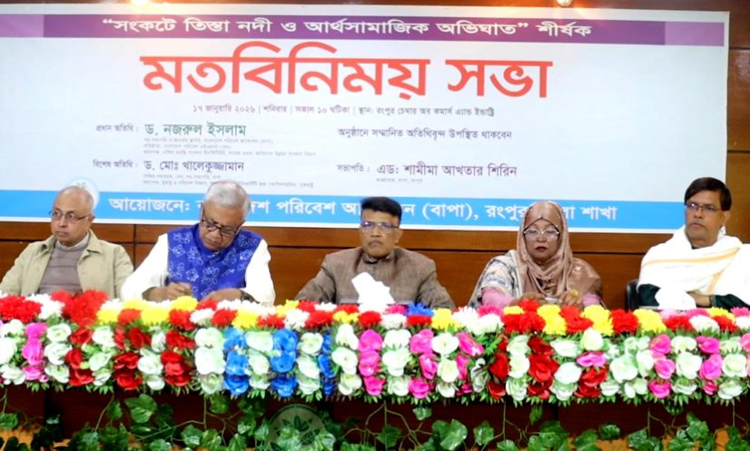 শনিবার (১৭ জানুয়ারি) বিকেলে রংপুর জেলা চেম্বার মিলনায়তনে বাপা রংপুর জেলা শাখা আয়োজিত ‘সংকটে তিস্তা নদী ও আর্থ-সামাজিক অভিঘাত’ শীর্ষক মতবিনিময় সভায় প্রধান অতিথির বক্তব্যে তিনি এসব কথা বলেন।
