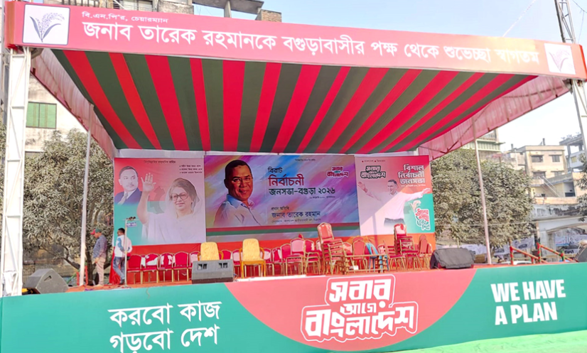 বগুড়া জেলা বিএনপির সভাপতি রেজাউল করিম বাদশা জানান, দলের চেয়ারম্যান তারেক রহমান রাজশাহীর সমাবেশের বক্তব্য শেষে নওগাঁ উদ্দেশ্য রওনা দিয়েছেন বলে জানা গেছে। সেখানে বক্তব্য শেষে আসার পথে বগুড়ার দুপচাঁচিয়া ও কাহালুতে পথসভায় বক্তব্য দেওয়ার কথা রয়েছে। এরপর রাত আনুমানিক ৮টার পর বগুড়া শহরের ঐতিহাসিক আলতাফুন্নেছা খেলার মাঠে নির্বাচনি জনসভায় ভাষণ দেবেন তিনি।