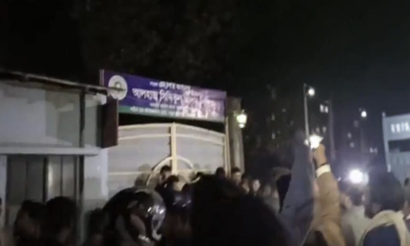 জানা যায়, জনতা তাদের আটকিয়ে নির্বাচনি অফিসে তল্লাশি চালানোর দাবি জানায়। একপর্যায়ে জনতার চাপে প্রশাসন অফিসের গেটে অবস্থান নেয়, তবে গেট বন্ধ থাকায় ভেতরে প্রবেশ করা সম্ভব হয়নি। প্রায় দুই ঘণ্টা অপেক্ষার পর অফিসের গেট ও ভবনের বৈদ্যুতিক বাতি নিভিয়ে দেওয়া হয়।