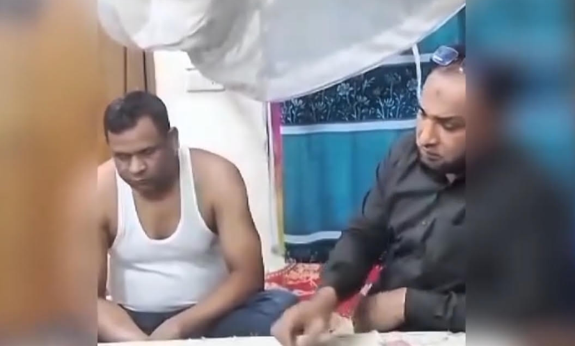ভাইরাল ভিডিওতে তাস খেলার দৃশ্য।
