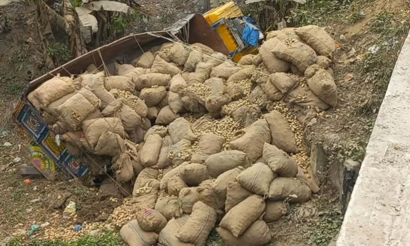 রাজবাড়ীতে নিয়ন্ত্রণ হারিয়ে আলুবোঝাই ট্রাক খাদে, চালক নিহত