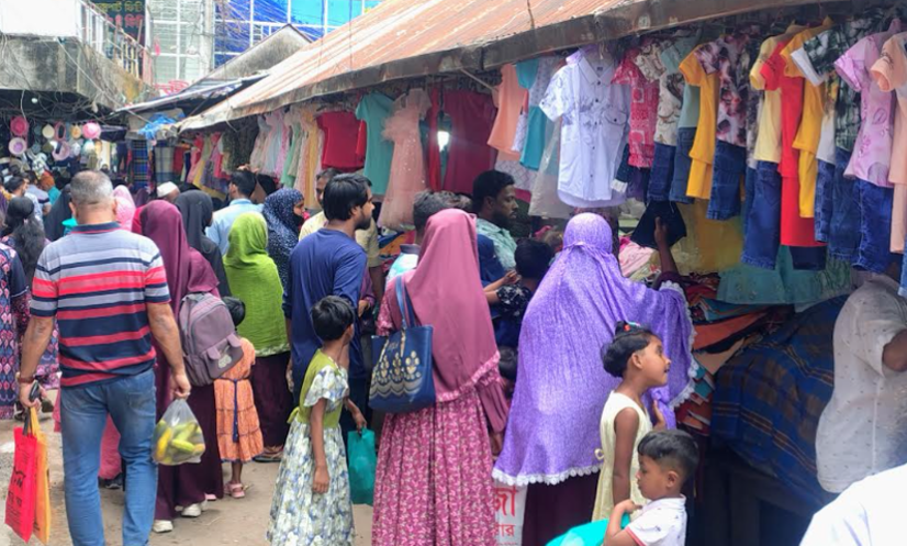 নতুন পোশাক, জুতা, কসমেটিকস, গহনা সবকিছু কিনতে পরিবার নিয়ে মার্কেটে আসছেন মানুষ। বিশেষ করে শিশু-কিশোর, নারীদের পোশাক ও শাড়ির দোকানগুলোতে ভিড় বেশি।