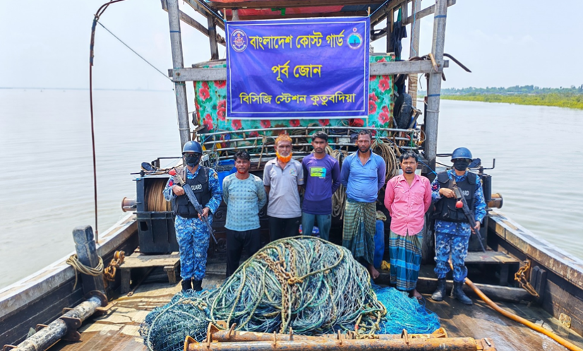কক্সবাজার: কক্সবাজারের কুতুবদিয়ায় অবৈধ আর্টিসানাল ট্রলিং বোট ও ট্রলিং জালসহ পাঁচজন জেলেকে আটক করেছে কোস্ট গার্ড। এ সময় একটি ট্রলিং বোট জব্দ করা হয়।