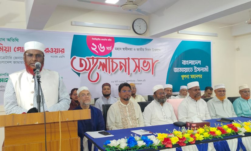 বৃহস্পতিবার (২৬ মার্চ ) বিকেলে মহান স্বাধীনতা ও জাতীয় দিবস উপলক্ষ্যে নগরীর আল ফারুক সোসাইটি মিলনায়তনে খুলনা মহানগরী জামায়াতে ইসলামী আয়োজিত আলোচনা সভায় প্রধান অতিথির বক্তব্যে তিনি এসব কথা বলেন।