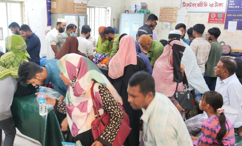 বৃহস্পতিবার (২ এপ্রিল) হাসপাতালে সরেজমিনে দেখা যায়, জায়গার অভাবে হাসপাতালের পুরাতন ভবনে ডায়রিয়া ওয়ার্ডের একটি কক্ষে ‘হামের’ চিকিৎসা চলছে। তবে, সেখানেও গাদাগাদি করে চলছে চিকিৎসা। একটি বেডে দুই-তিন শিশুকেও রাখা হয়েছে। কাউকে আবার মেঝেতেই চিকিৎসা দেওয়া হচ্ছে। শিশু এবং ডায়রিয়া ওয়ার্ডে চিকিৎসা নিতে আসাদের হাম-উপসর্গ দেখা দেওয়ার পর এখানে স্থানান্তর করা হচ্ছে। এ পরিস্থিতিতে সীমিত জনবল ও ওয়ার্ড সংকটের মধ্যে চিকিৎসায় হিমশিম খাচ্ছেন চিকিৎসক-নার্সরা।