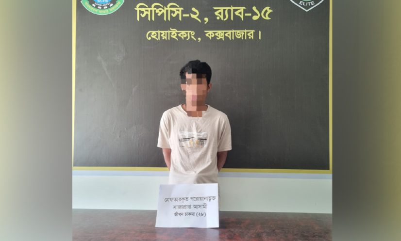 র্যাব-১৫ জানায়, গোপন সংবাদের ভিত্তিতে শনিবার (১১ এপ্রিল) ভোর ৪টার দিকে টেকনাফ উপজেলার হোয়াইক্যং ইউনিয়নের কাটাখালী চাকমাপাড়া এলাকায় অভিযান চালানো হয়। এ সময় আসামি জীবন চাকমাকে (২৮) তার নিজ বাড়ি থেকে গ্রেফতার করা হয়। গ্রেফতার জীবন চাকমা ওই এলাকার বাসিন্দা চাইলা মং চাকমার ছেলে। তার বিরুদ্ধে আদালতের দেওয়া ৫ বছরের সশ্রম কারাদণ্ডের আদেশ ছিল। তিনি দীর্ঘদিন ধরে পলাতক ছিলেন।