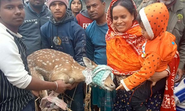 বাগেরহাট: সুন্দরবনে বাঘের তাড়া খেয়ে লোকালয়ে ঢুকে পড়া একটি জীবিত চিত্রা হরিণ উদ্ধার করা হয়েছে।