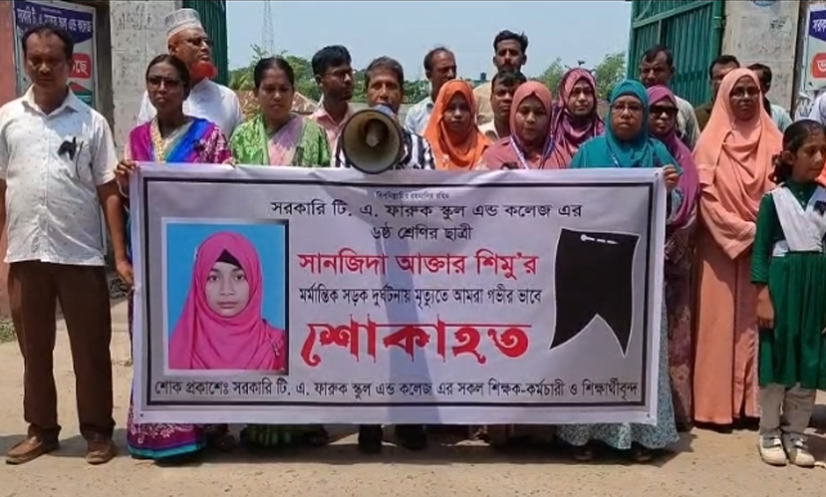 কলেজের প্রধান শিক্ষক (ভারপ্রাপ্ত) তালুকদার মোঃ জিয়াদ হোসাইন বলেন, বেপরোয়া গাড়ি চালানোর জন্য সরকারি টি এ ফারুক স্কুল এন্ড কলেজের মেধাবী ছাত্রী সানজিদা আক্তার শিমু (১১) সোমবার(২০ এপ্রিল) ইজিবাইকের চাপায় মারা যায়।