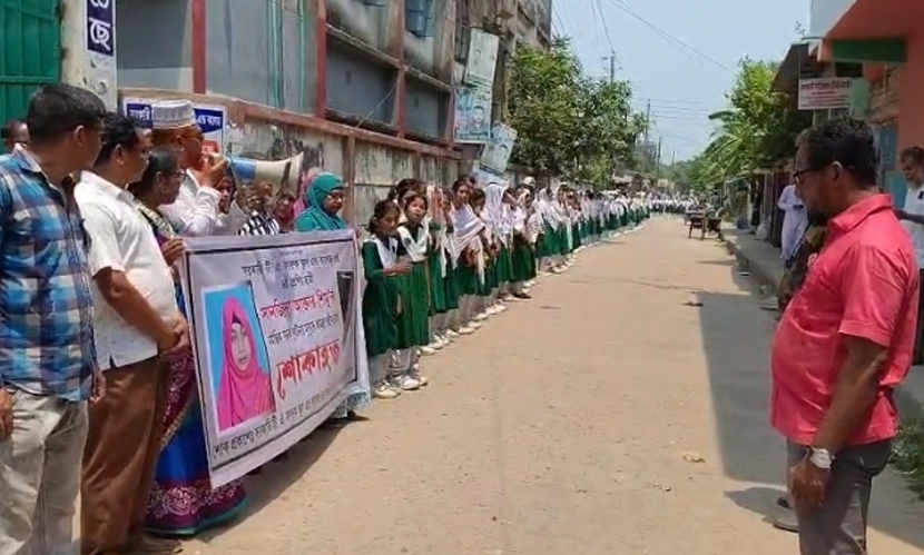 মানববন্ধনে উপস্থিত ছিলেন,প্রভাষক সাহাদাৎ হোসেন, সহকারী শিক্ষক অপরুপ হালদার, রেবতী হালদার, ফজিলাতুন্নেছা বকুল, সরদার মেহফুজ আজিজ টুলু, বিলতা হালদার।