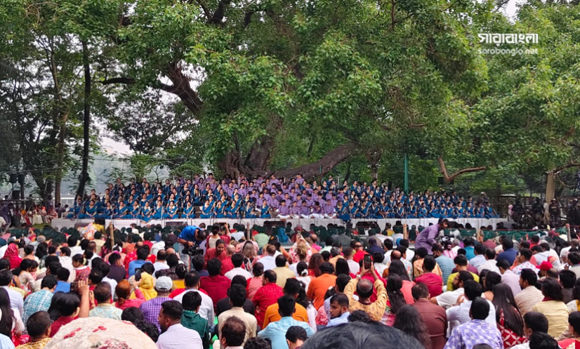 রমনা উদ্যানের বটমূলে বর্ষবরণ। ছবি: সারাবাংলা