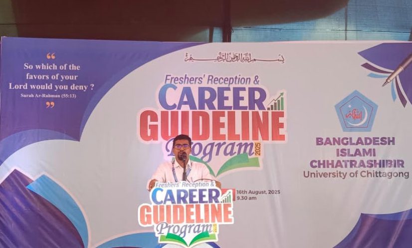 শনিবার (১৬ আগস্ট) সকালে চট্টগ্রাম বিশ্ববিদ্যালয়ে বাস্কেটবল গ্রাউন্ডে বিশ্ববিদ্যালয় শাখা ইসলামী ছাত্রশিবির আয়োজিত ‘নবীনবরণ ও ক্যারিয়ার গাইডলাইন’ অনুষ্ঠানে এ কথা বলেন তিনি।