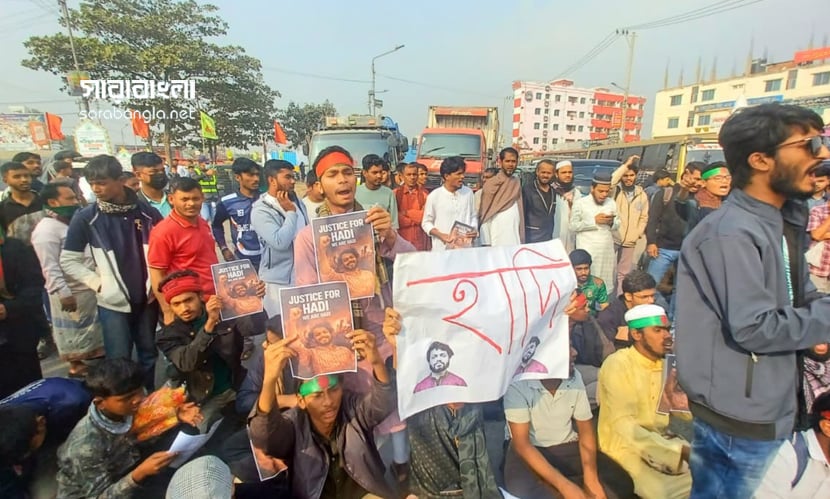 অবস্থানকারীরা জাতীয় পতাকা, হাদি হত্যার বিচার দাবিতে লেখা প্লেকার্ড নিয়ে স্লোগানে-স্লোগানে মুখর করে তুলেছেন পুরো এলাকা। হাদির খুনিদের সবাইকে গ্রেফতার ও বিচার না হওয়া পর্যন্ত রাজপথ ছাড়বেন না বলে জানিয়েছেন তারা।