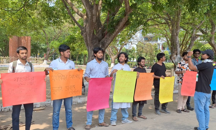 চট্টগ্রাম: জুলাই সনদ ও গণভোটের জনরায় বাস্তবায়নের দাবিতে মানববন্ধন ও অবস্থান কর্মসূচি পালন করেছে চট্টগ্রাম বিশ্ববিদ্যালয়ের একদল শিক্ষার্থী।