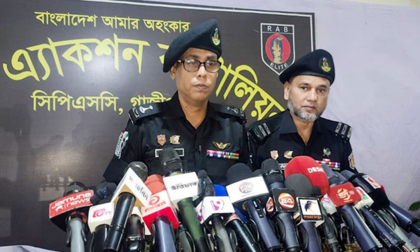শনিবার (৯ আগস্ট) দুপুরে গাজীপুরে পোড়াবাড়ী র্যাব-১ এর ক্যাম্পে অনুষ্ঠিত সংবাদ সম্মেলনে এ তথ্য জানিয়েছেন র্যাব-১ এর কোম্পানি কমান্ডার একেএম এ মামুন খান চিশতি।