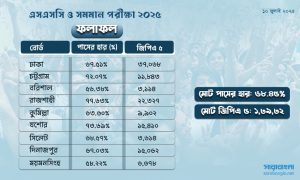 ঢাকা: ২০২৫ সালের এসএসসি ও সমমান পরীক্ষার ফলাফল প্রকাশিত হয়েছে। বৃহস্পতিবার (১০ জুলাই) দুপুর ২টায় এ ফল প্রকাশ করা হয়। এ বছর গড় পাসের হার ৬৮ দশমিক ৪৫ শতাংশ। মোট […]