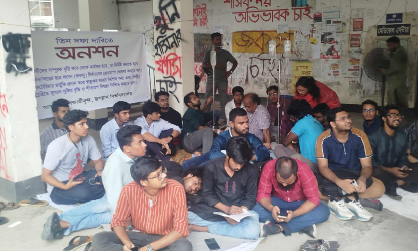 অনশন গত মঙ্গলবার (১৬ সেপ্টেম্বর) দুপুরের পর থেকে বিশ্ববিদ্যালয়ের রফিক ভবনের নিচে শুরু হয় এবং বুধবার বিকেল পর্যন্ত চলছিল। সাধারণ শিক্ষার্থীরাও এতে অংশগ্রহণ শুরু করেছেন।
