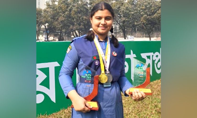 বগুড়া: জাতীয় শিক্ষা সপ্তাহ ২০২৬ সালের প্রতিযোগিতায় জাতীয় পর্যায়ে দেশাত্মবোধক গানে ১ম ও নজরুল সংগীতে ২য় স্থান অর্জন করে গোল্ড মেডেল ও রৌপ্য মেডেল অর্জন করেছে বগুড়ার মেয়ে সৌমিকা লাহিড়ী।