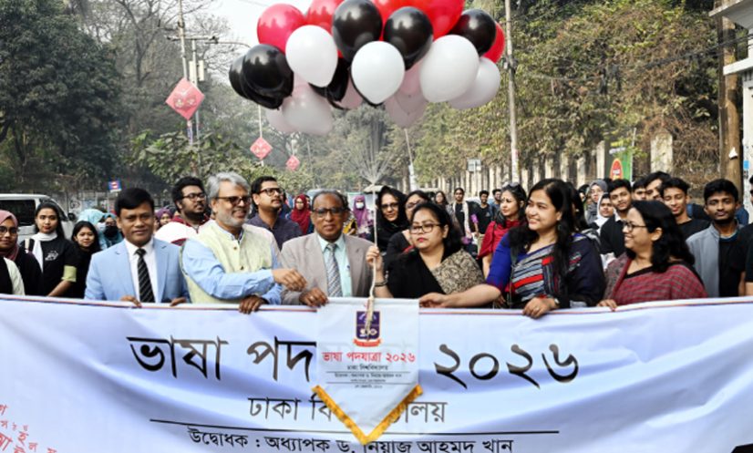 ঢাবি: মহান শহিদ দিবস ও আন্তর্জাতিক মাতৃভাষা দিবস উপলক্ষ্যে ঢাকা বিশ্ববিদ্যালয় ভাষাবিজ্ঞান বিভাগের উদ্যোগে এক ভাষা পদযাত্রা বের করা হয়।