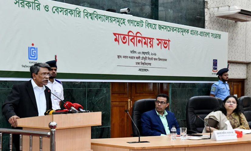 মঙ্গলবার(৩ ফেব্রুয়ারি) সকালে ঢাকা বিশ্ববিদ্যালয়ের নবাব নওয়াব আলী চৌধুরী সিনেট ভবন মিলনায়তনে আয়োজিত ‘সরকারী ও বেসরকারী বিশ্ববিদ্যালয়ের গণভোট নিয়ে জনসচেতনতামূলক প্রচার-প্রচারণ সংক্রান্ত’ মতবিনিময় সভায় তিনি এ কথা বলেন।