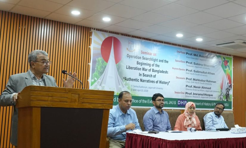 জবি: অধ্যাপক সলিমুল্লাহ খান বলেছেন, ‘মুক্তিযুদ্ধের ইতিহাস দীর্ঘদিন ধরে একটি নির্দিষ্ট রাষ্ট্রীয় বয়ানের মধ্যে সীমাবদ্ধ ছিল, যেখানে বিকল্প দৃষ্টিভঙ্গি ও গুরুত্বপূর্ণ প্রশ্নগুলো উপেক্ষিত হয়েছে।’